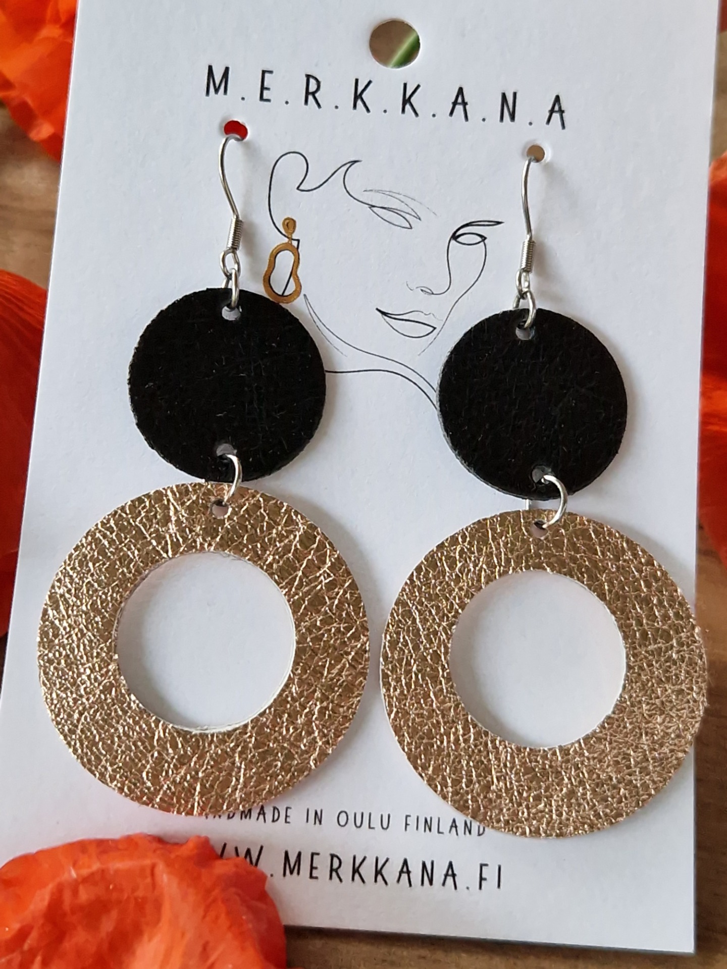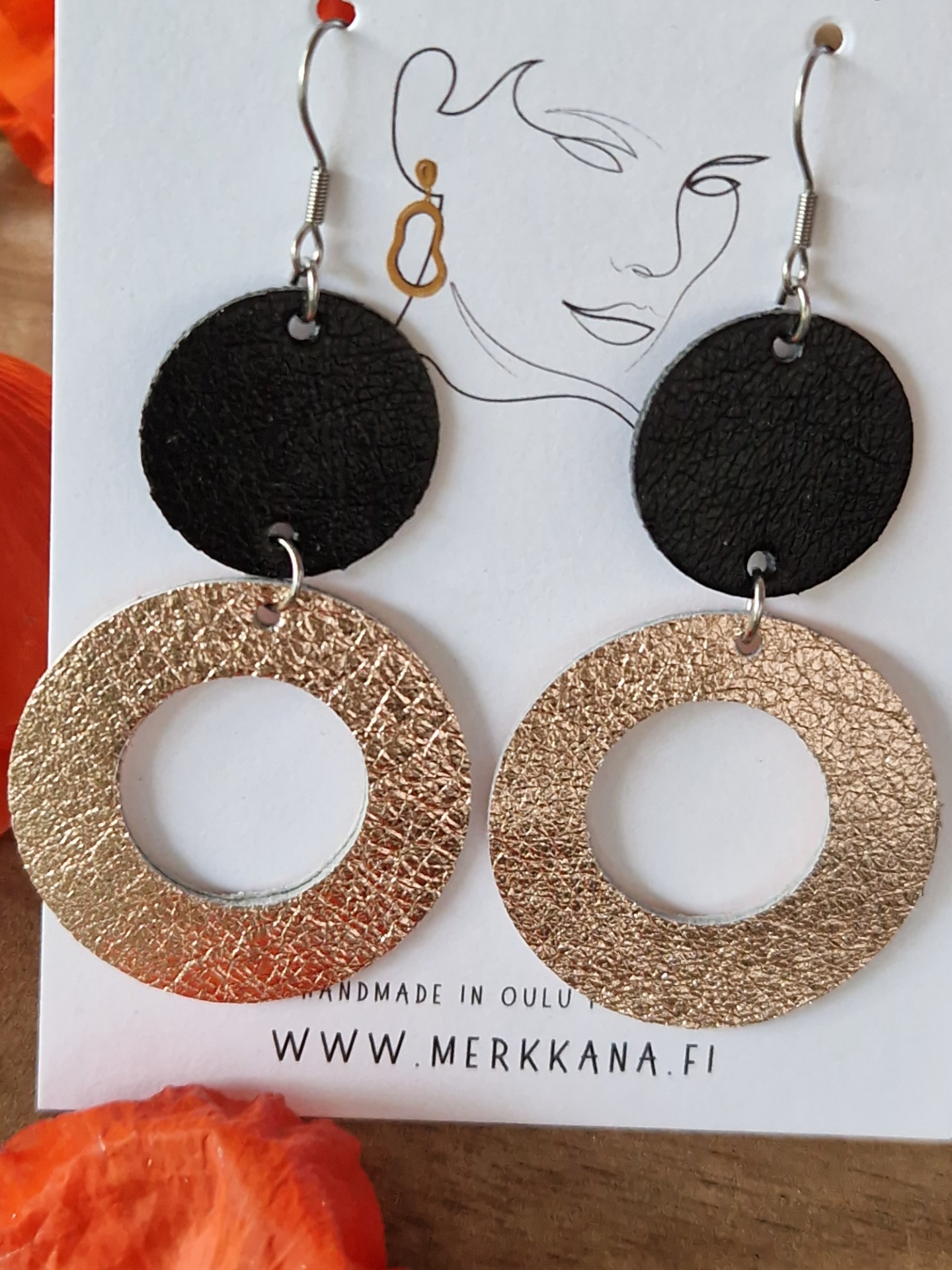 Ruusukulta on oikeaa nahkaa, musta jäljitelmää. Osat ovat liimatut kaksinkertaiseksi ja on molemminpuolin samanlainen.
