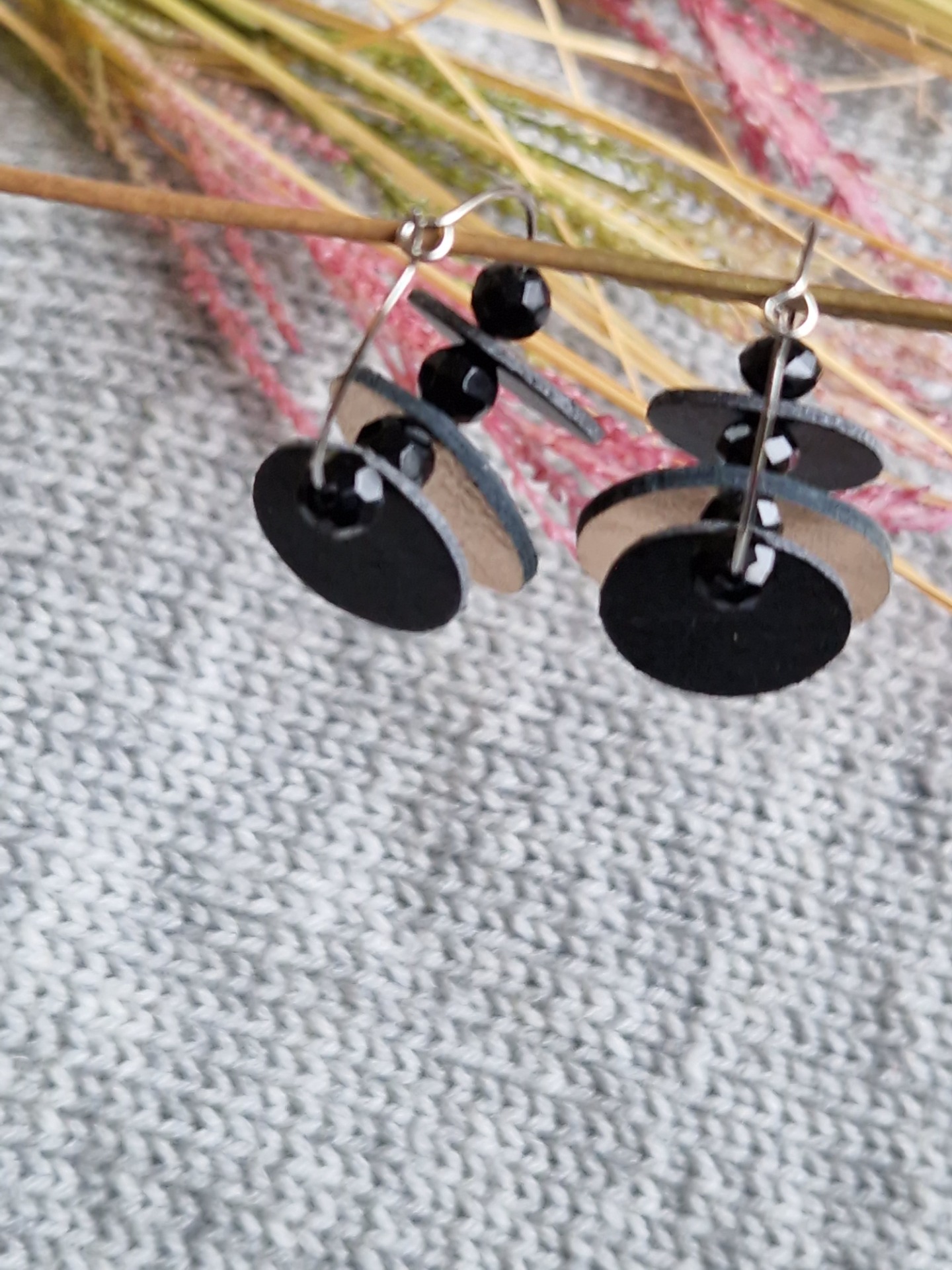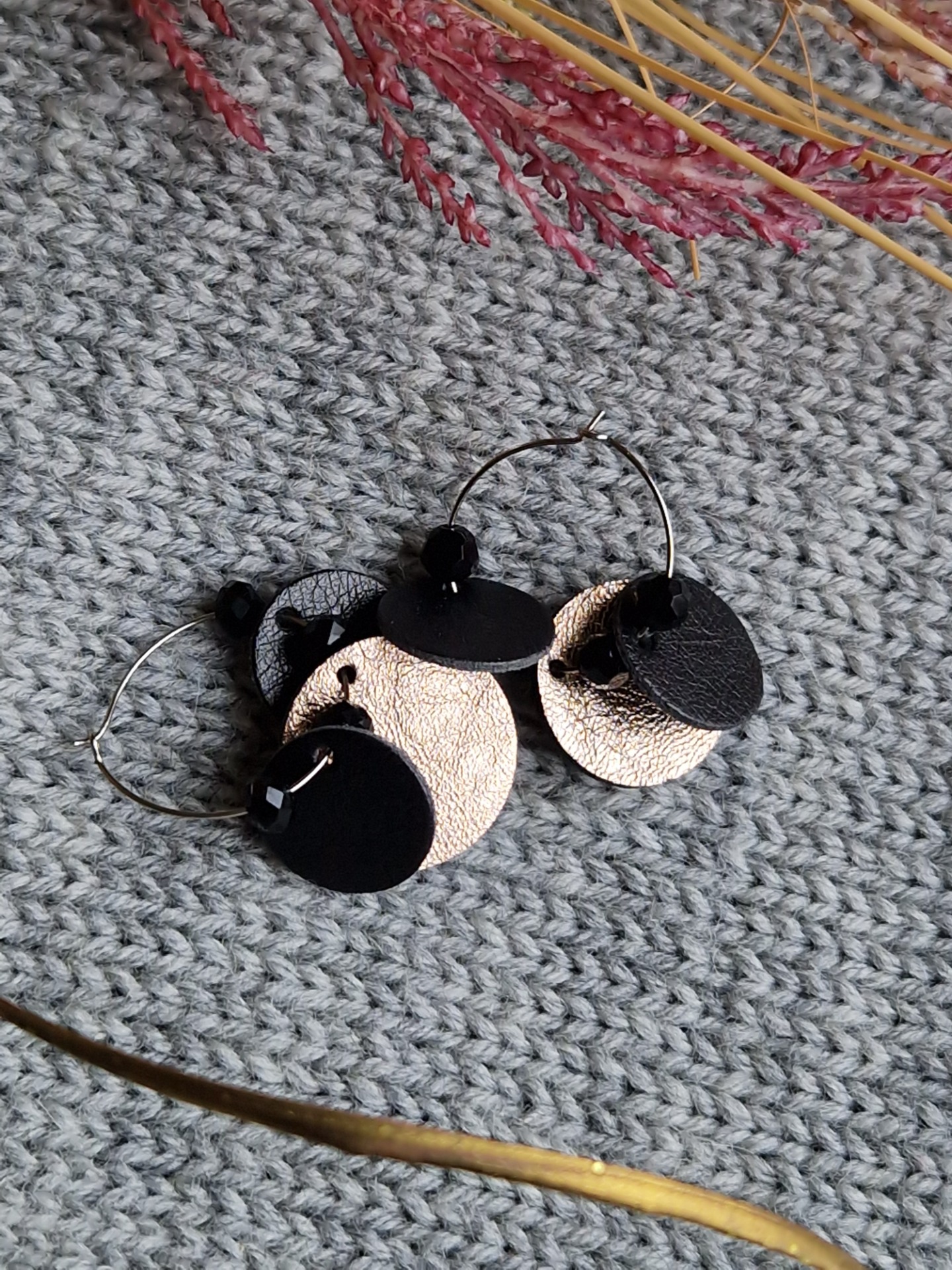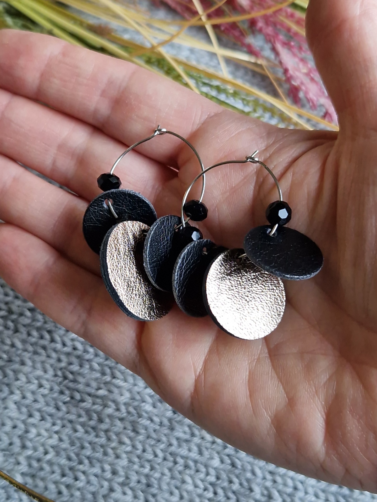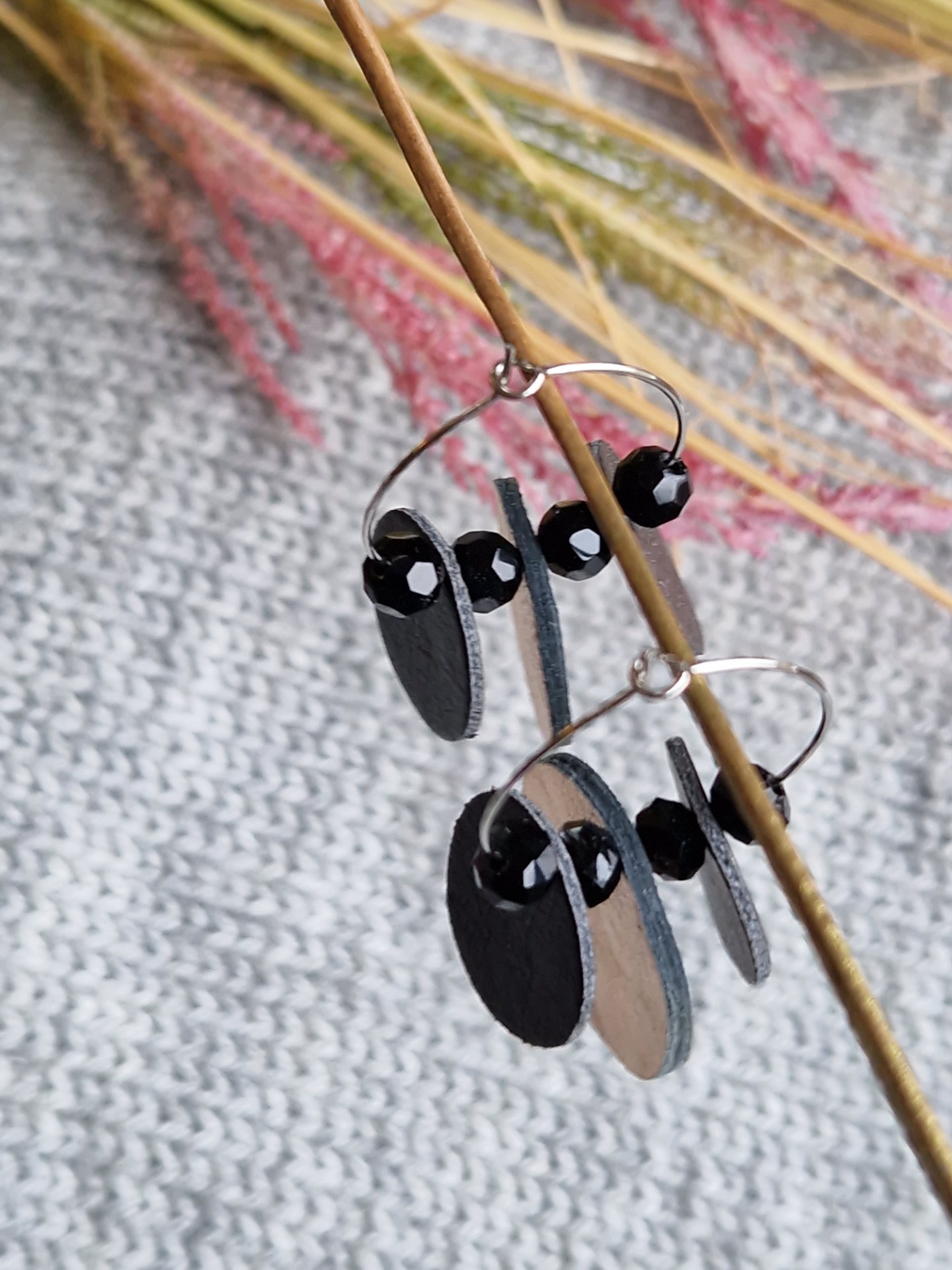 Näissä näyttävissä rengaskorvakoruissa yhdistyvät kiiltävät mustat lasihelmet ja pehmeät pyöreät palat. Materiaalien ja elegantin muotoilun ansiosta korvakorut sopivat niin arkeen kuin juhlaan. Kevyet ja mukavat käyttää, mutta tuovat asuun persoonallisen ilmeen.