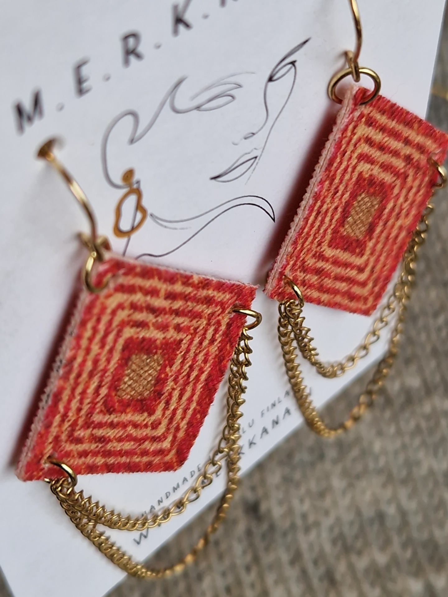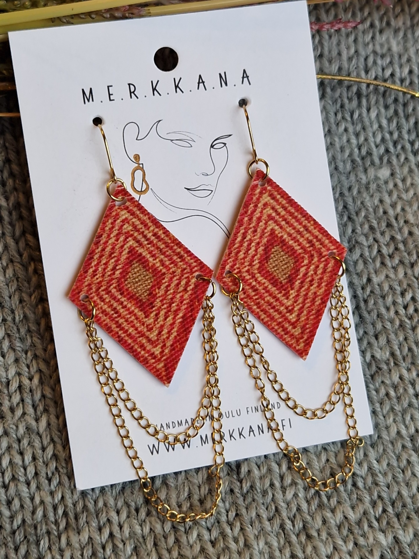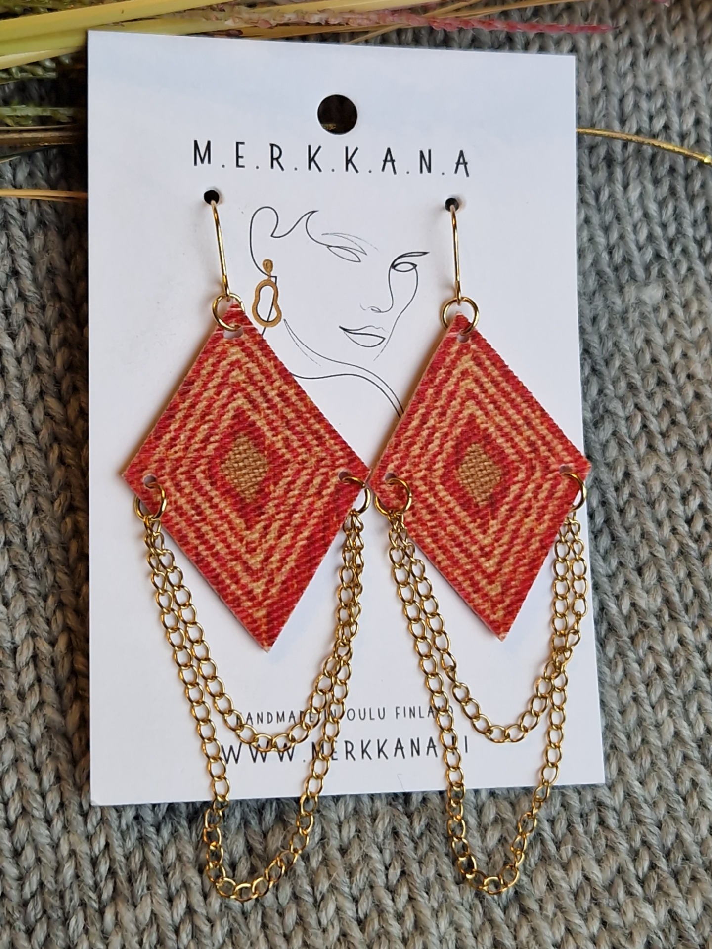 Korvakorut ovat liimattu kaksipuoleisiksi ja toinen puoli on saman värinen, mutta epäsymmetrinen kuvioltaan.