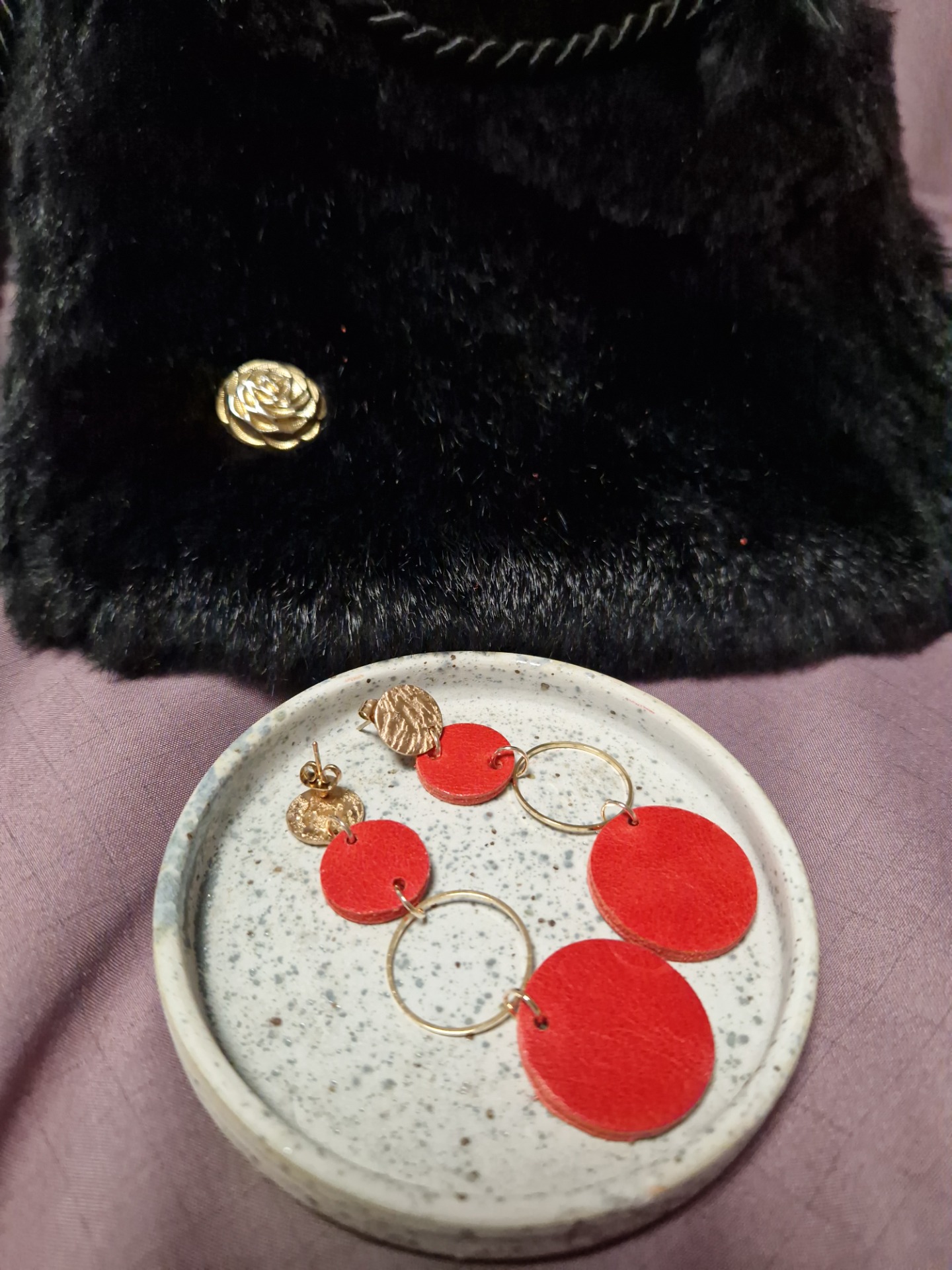Puhdistukseen riittää pehmeä, kuivakangas, jolla voit pyyhkiä korvakorut säännöllisesti poistaaksesi lian ja pölyn. Vältä liuottimien tai voimakkaiden kemikaalien käyttöä, sillä ne voivat vahingoittaa nahkaa.