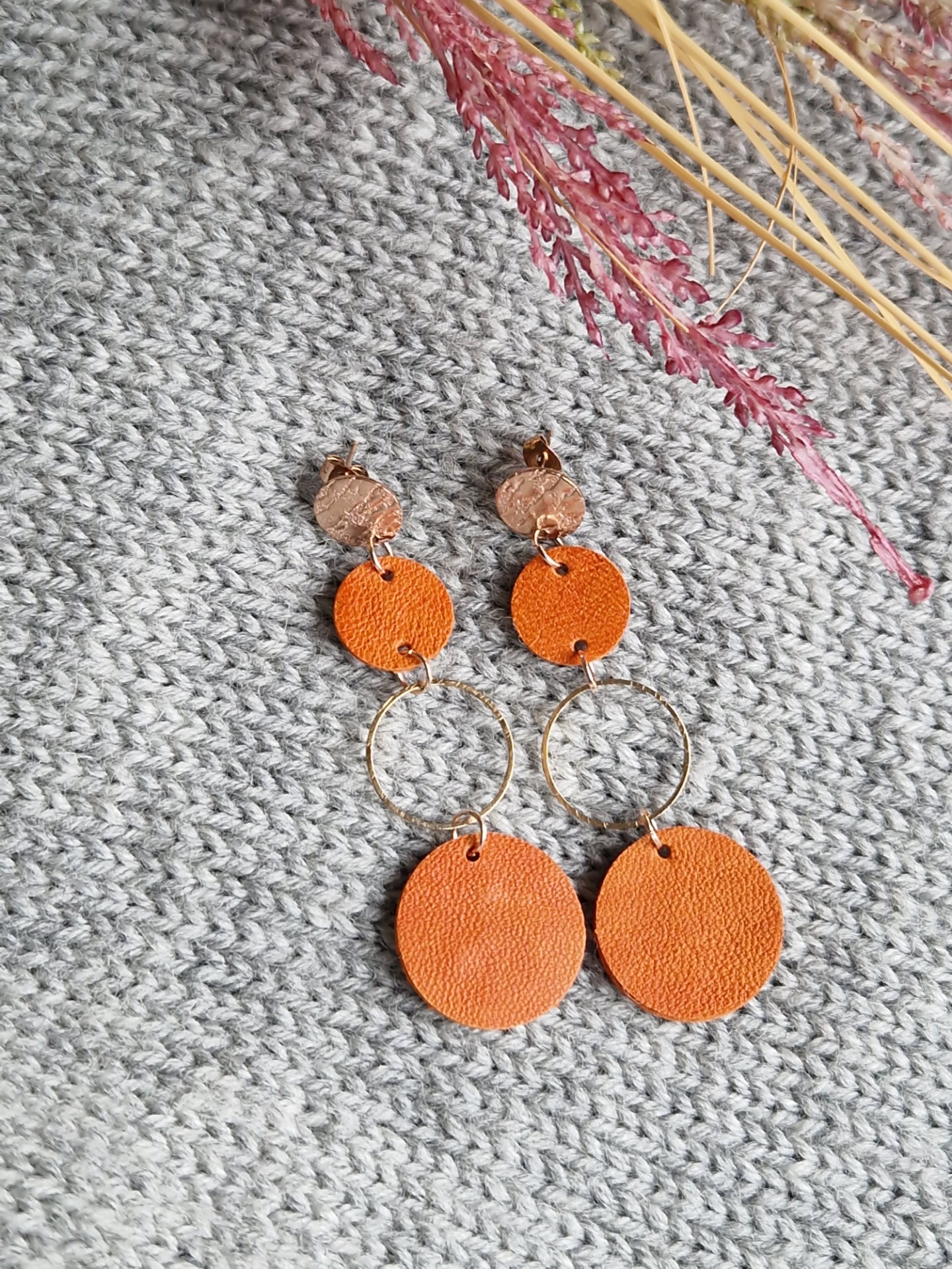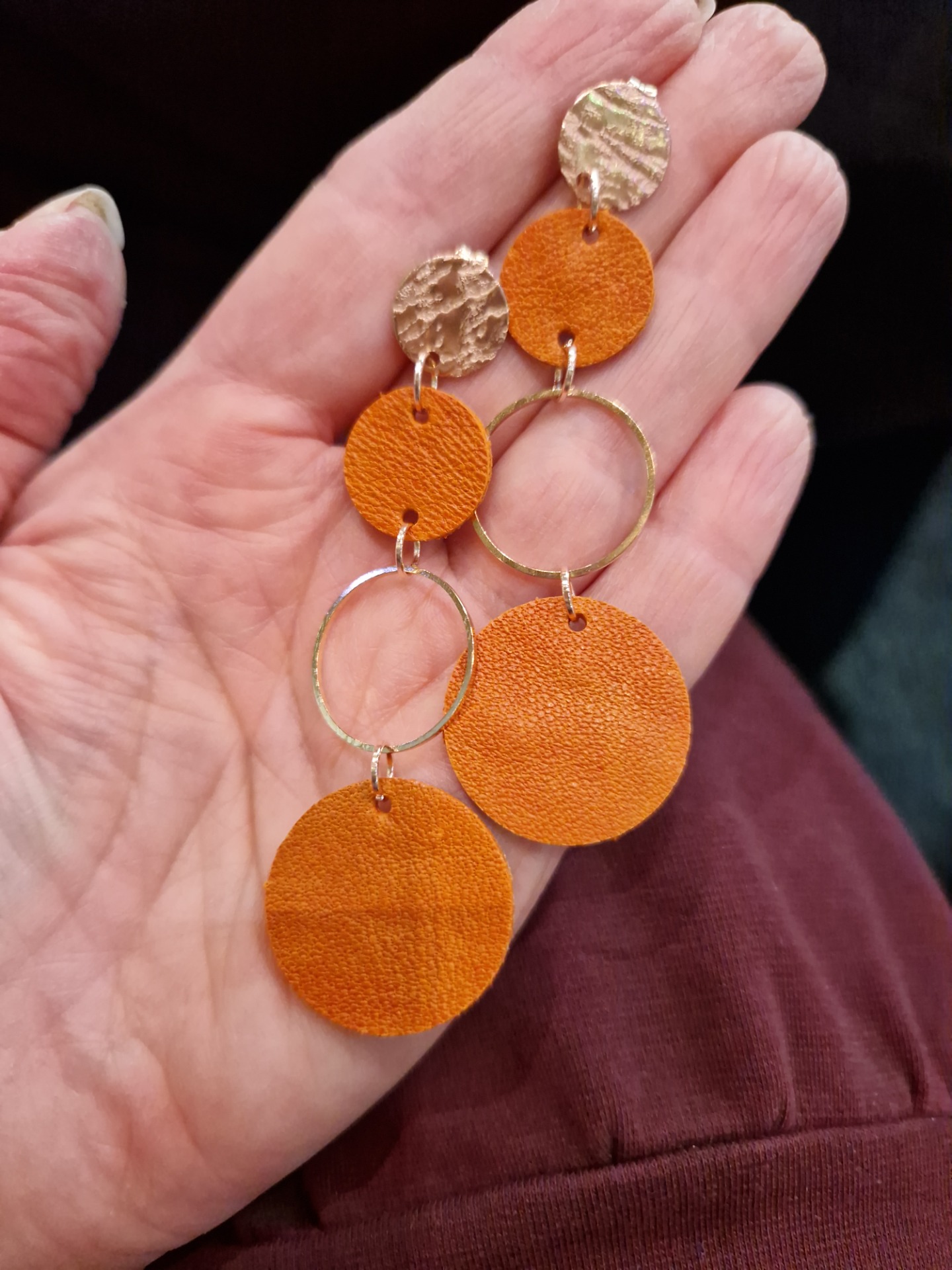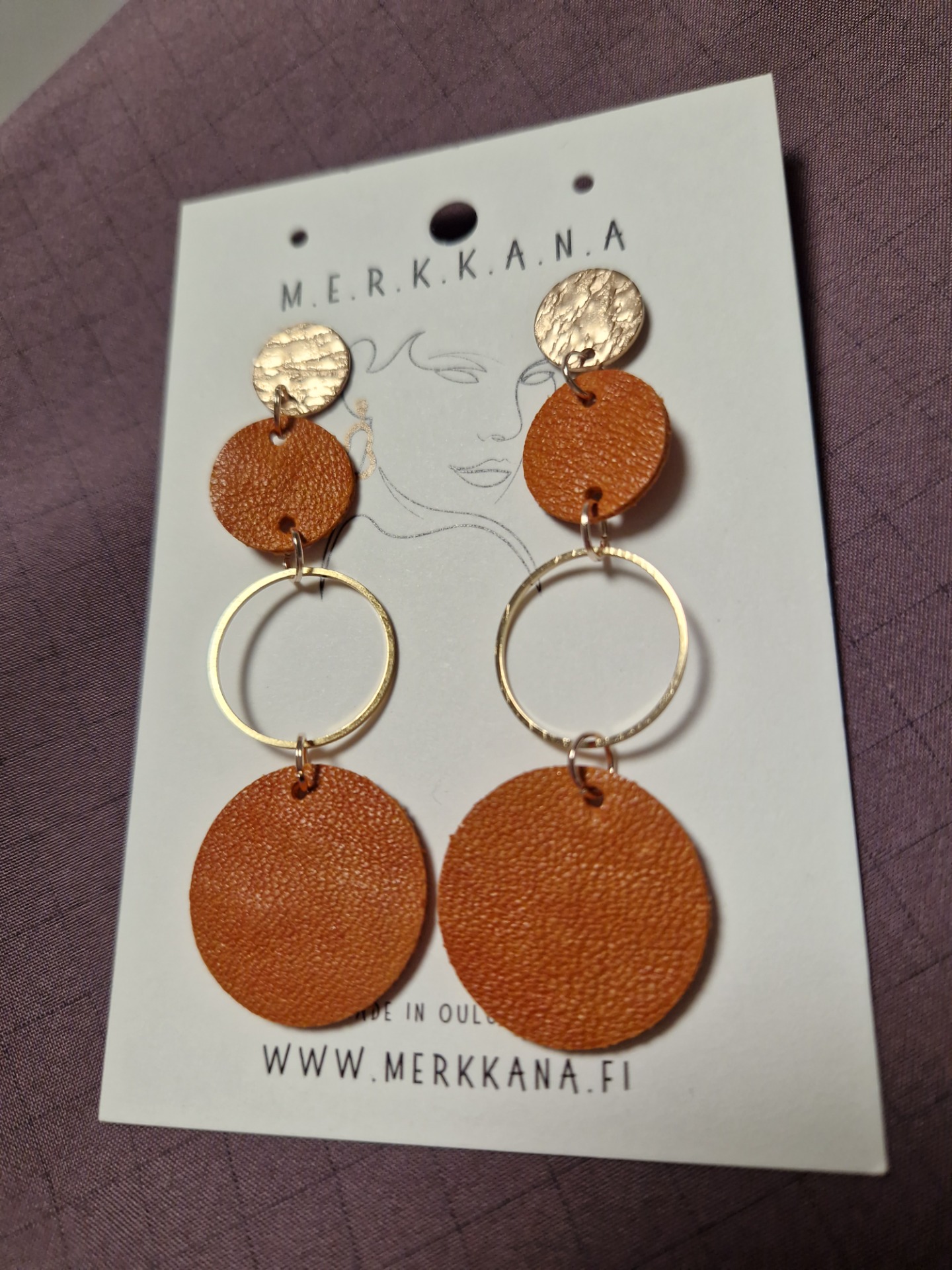 Nahka on kaksinkertaiseksi liimattu. Keskellä oleva rengas on kullanväristä metalliseosta (nikkelitön).