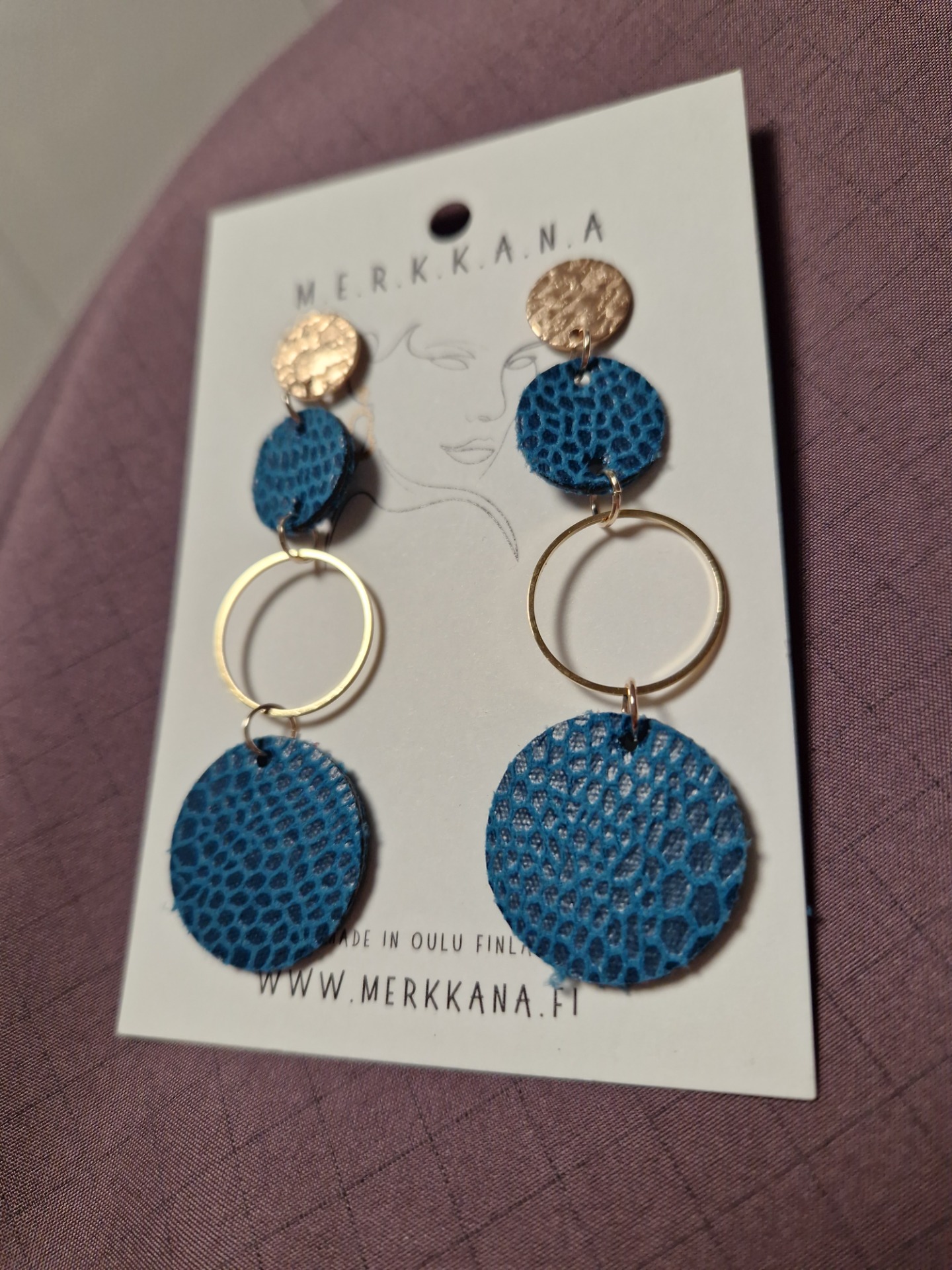 Tekstiili on kaksinkertaiseksi liimattu. Keskellä oleva rengas on kullanväristä metalliseosta (nikkelitön).