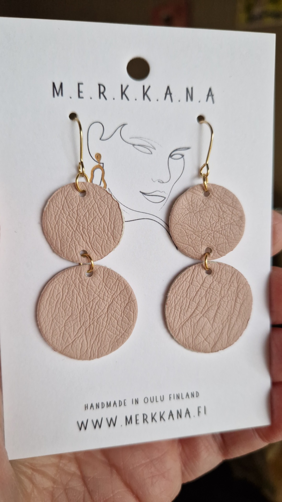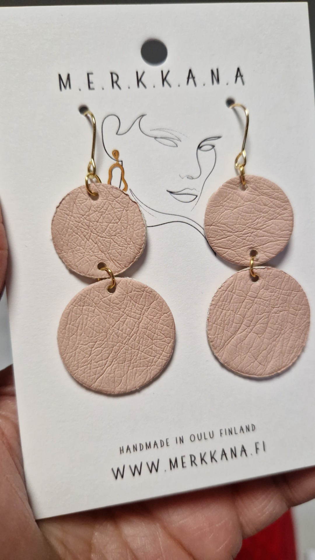 Hempeän vaaleanpunaiset korvakorut jäljitelmänahasta. Osat ovat liimattu kaksinkertaisiksi. Korvakorut ovat kevyet, eivätkä venytä korvalehteä.